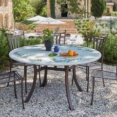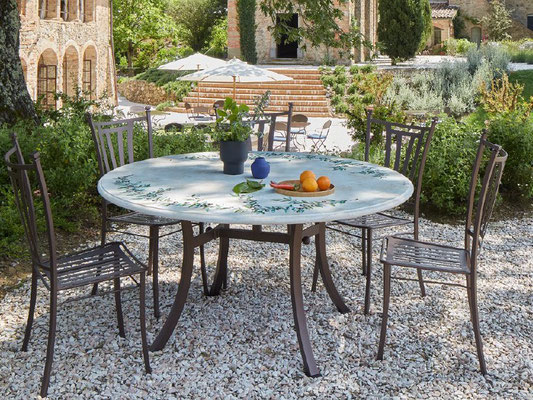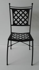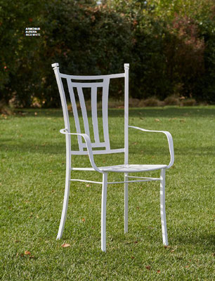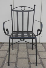 Traditionelle Gartenstühle aus Edelstahl mit geschwungenen Linien, großzügigen Gestaltung, bequem, majestätisch aussehend.
