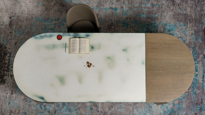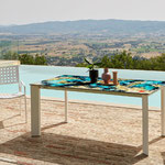 Bis zu 10 unterschiedliche Tischgestelle aus Edelstahl, Holz, Aluminium können mit Dekors Serie Design kombinieren