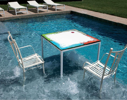Bis zu 10 unterschiedliche Tischgestelle aus Edelstahl, Holz, Aluminium können mit Dekors Serie Design kombinieren