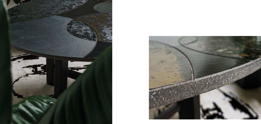 Bis zu 10 unterschiedliche Tischgestelle aus Edelstahl, Holz, Aluminium können mit Dekors Serie Design kombinieren