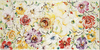 Die Blumenmotive werden aus lebhaften Nuancen und leuchtenden Farbzusammenstellungen gemalt.