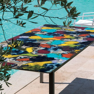 Bis zu 10 unterschiedliche Tischgestelle aus Edelstahl, Holz, Aluminium können mit Dekors Serie Design kombinieren