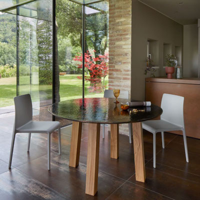 Bis zu 10 unterschiedliche Tischgestelle aus Edelstahl, Holz, Aluminium können mit Dekors Serie Design kombinieren